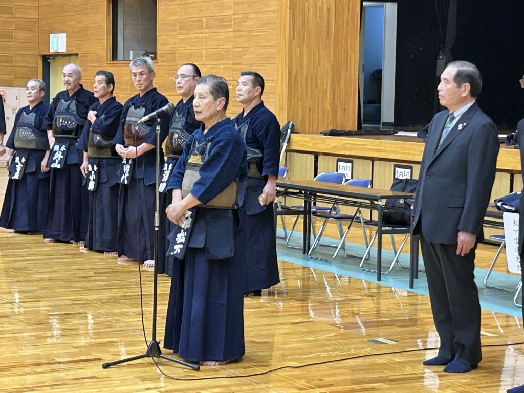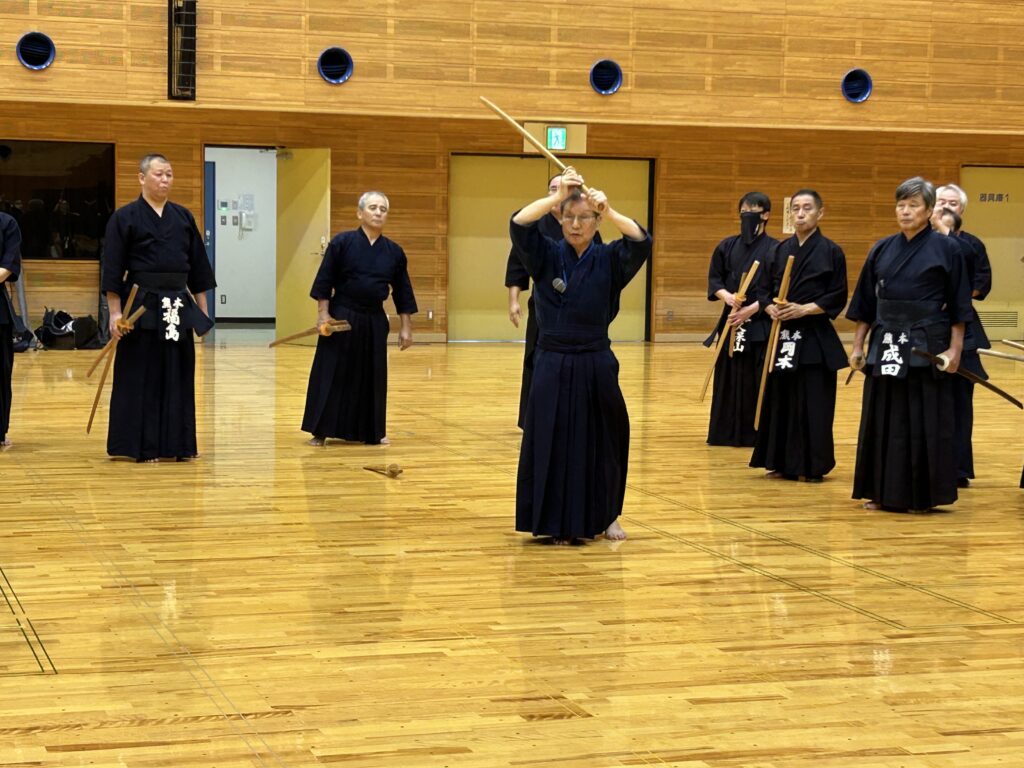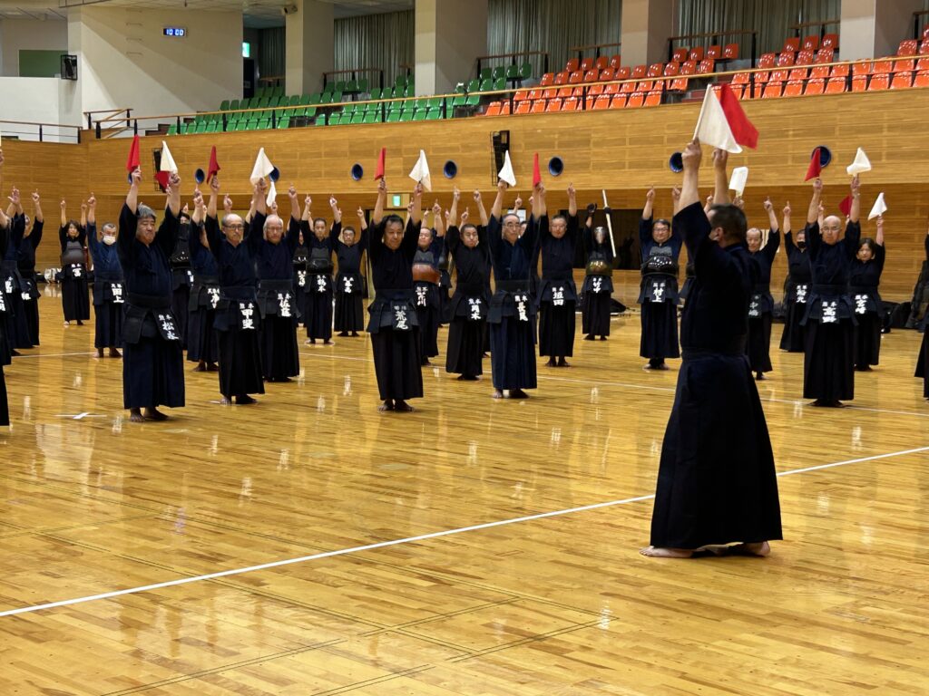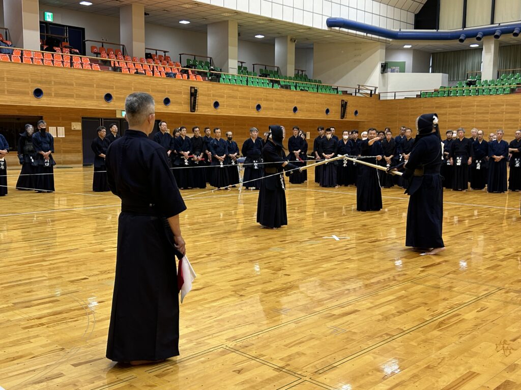 2025年10月15日 / 最終更新日時 : 2025年10月15日 kumakendo お知らせ 令和7年度 全日本剣道連盟後援剣道講習会 熊本県剣道連盟は令和7年度全日本剣道連盟後援剣道講習会を10月5日、合志市総合体育館で開催した。全剣連から派遣された山﨑尚(愛知)、松下吉進(東京)の両範士八段が講師として審判法、日本剣道形と指導法について講義され、県剣連からは117名(うち八段10名)が参加した。講義終了後に出席者からは「親切丁寧で分かり易く、参加してよかった」との声が多く聞かれた。 審判法を担当された山﨑講師は冒頭に「傍聴するという姿勢ではなく、自分自身が審判旗を持って実施しているとの意識を持ち、真剣に取り組んで欲しい」と述べられた。実技指導では位置取りの大切さを強調され、ゴム紐を使いながら主審を中心とする二等辺三角形の基本的な動きを説明され、見落としやすい有功打突の見極めなどについて説明された。 午後からの日本剣道形は、松下講師が一本一本の動きや留意点を解説され、剣道形の稽古が剣道の構えや姿勢、刃筋の使い方につながるとの意味合いを伝えられた。(了)